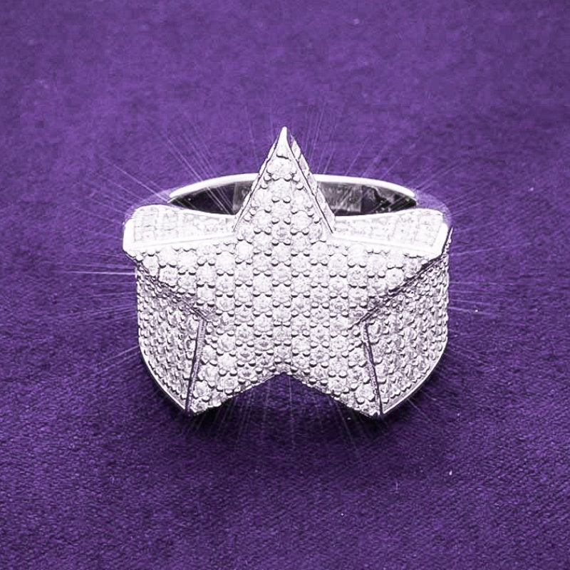 Crafted from premium 925 Sterling Silver, the ring's multi-dimensional design ensures a 360-degree shine, with pavé stones covering every visible surface including the star's face and the tapered band. The architectural depth of the star provides a striking profile that captures light from every angle, making it the ultimate addition to any high-end jewellery collection.